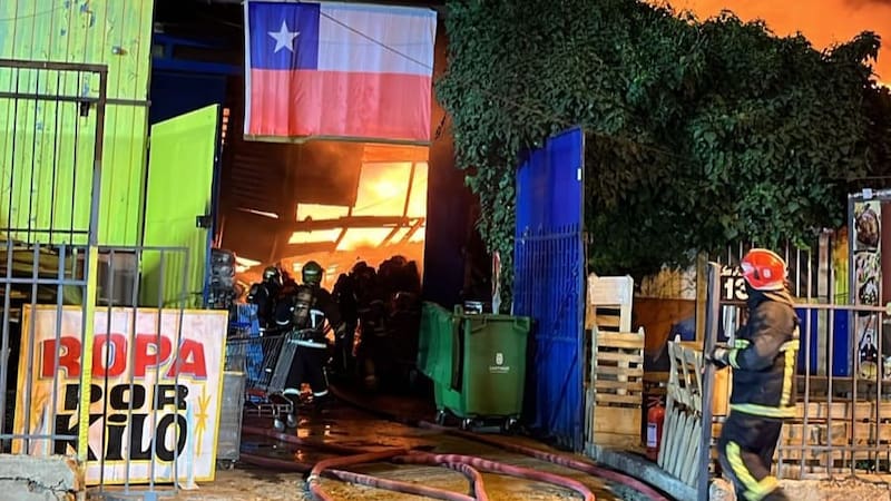 El incendio inició alrededor de las 22.30 horas en una de las bodegas ubicada en la intersección de calle San Francisco de Borja y Antofagasta.