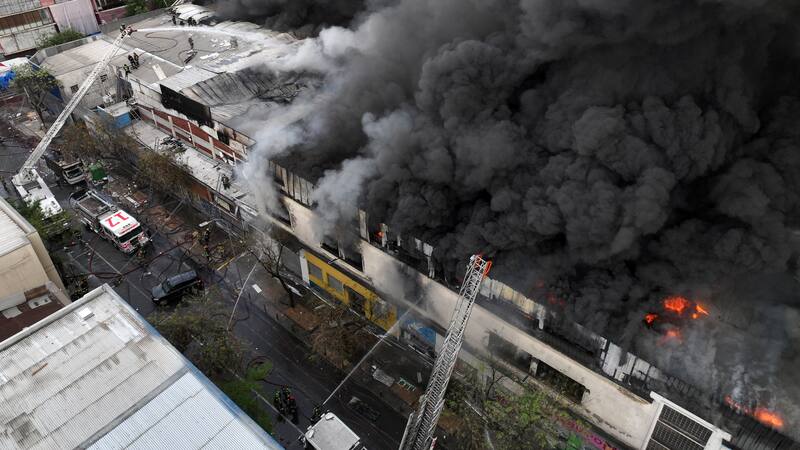 El comandante Giorgio Tromben, perteneciente al Cuerpo de Bomberos de Santiago, precisó que la institución ”sigue trabajando principalmente en la extinción completa de este siniestro, el cual afectó a 26 locales que ya están confirmados”.