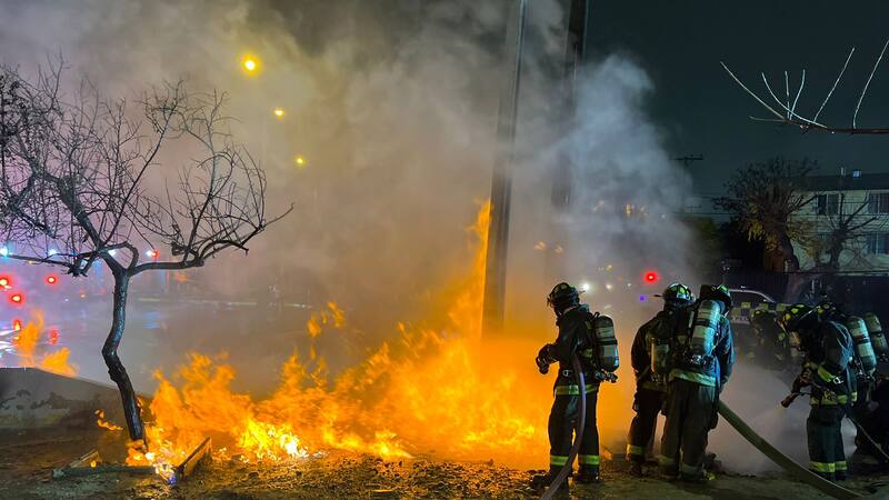 “Al llegar al lugar el primer carro se dio cuenta de fuego que salía de la base del poste del alumbrado público y este fuego aumentó su intensidad. Tenemos un fuego bastante violento producto de una rotura de una cañería primeria de Metrogas, es una cañería de un volumen relativamente importante. Metrogas está haciendo todas las gestiones para realizar el corte, pero hasta ahora no ha podido y nosotros estamos tratando de hacer la extinción, primero sofocando y evitando la propagación del fuego”, afirmó Müller.