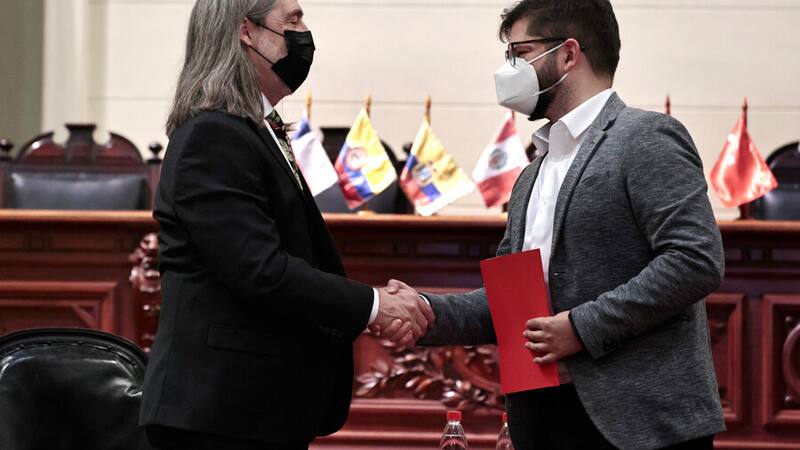 En la sede del Congreso Nacional en Santiago, el Presidente electo Gabriel Boric, participó este miércoles al mediodía de la sesión en periodo extraordinario del Parlamento Andino, instancia que preside el senador chileno Juan Pablo Letelier y está integrada por representantes de Bolivia, Chile, Colombia, Ecuador y Perú.