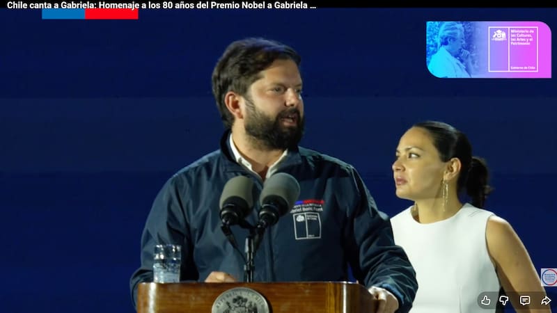 El Presidente fue parte de "Chile Canta a Gabriela", un homenaje visual y musical al galardón que la poeta recibió en 1945, donde también participaron la ministra de las Culturas y artistas como Joe Vasconcellos, Javiera Parra, Akriila y Amparo Noguera.
