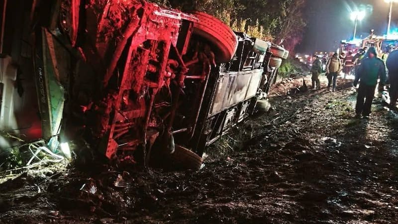 Por Joaquín BarrientosBus con 43 pasajeros cerca de Loncoche se vuelca en el kilómetro 743 de la Ruta 5 Sur