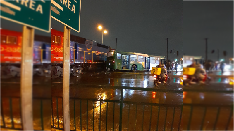 El hecho ocurrió cerca de las 19.30 horas en Avenida Esquina Blanca y Del Ferrocarril, donde el vehículo de pasajeros operado por Buses Vule fue impactado por el tren de carga, mientras pasaba por un cruce ferroviario.