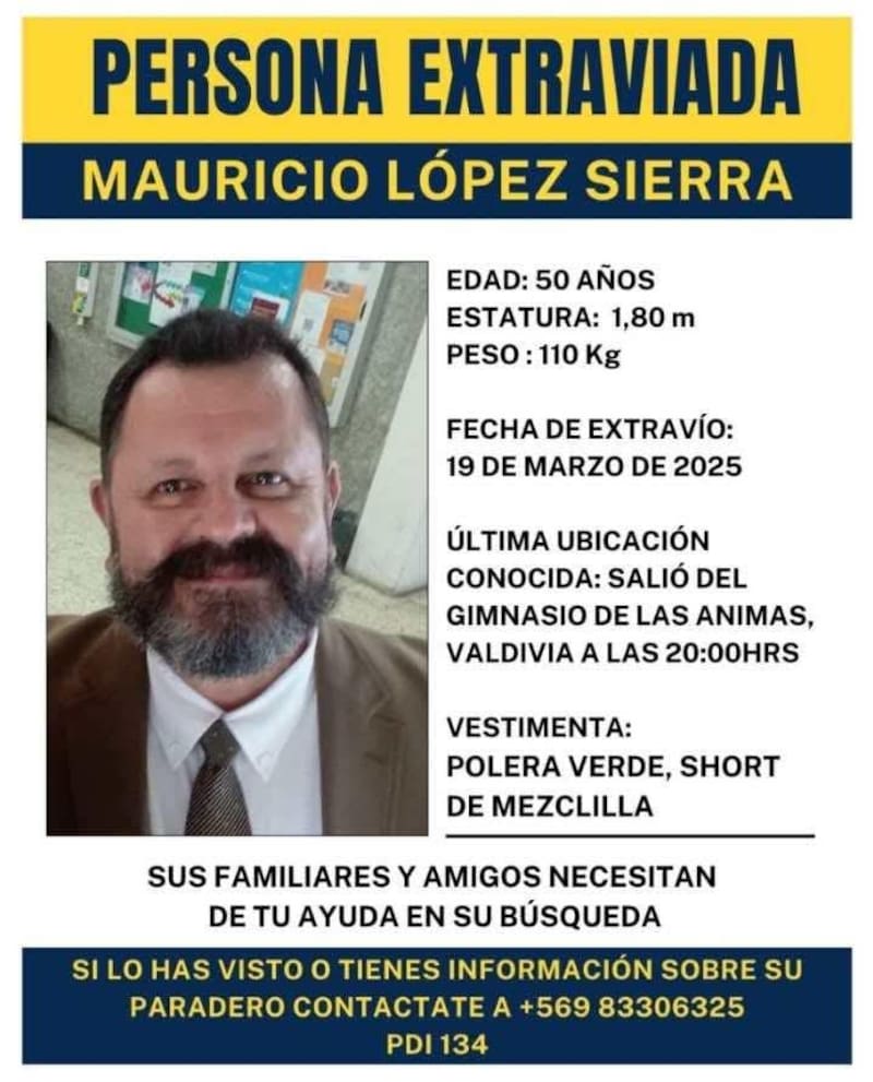 Desde hace diez días que Mauricio López Sierra, exprofesor de la Universidad Austral de Chile se encuentra desaparecido.