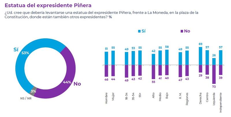 Un 53% se manifestó a favor con levantar una estatua en honor al expresidente Sebastián Piñera en la Plaza de la Constitución. Así lo revelan los resultados de la última encuesta Plaza Pública, que realiza Cadem, correspondiente a la última semana de enero.