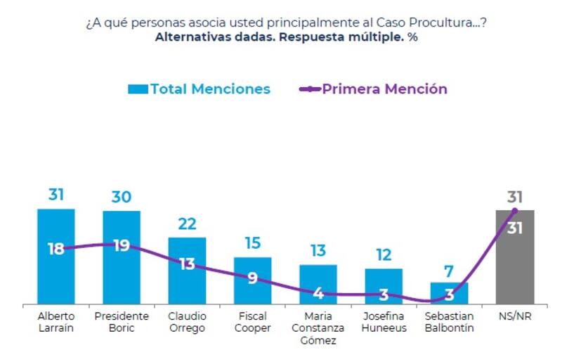 En el mismo tenor, un 31% asocia el caso al exdirector de la fundación, Alberto Larraín, mientras que un 30% lo relaciona con el Presidente Gabriel Boric.