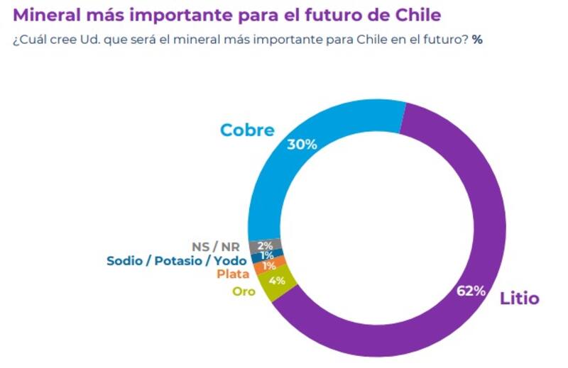 El sondeo de opinión, correspondiente a la última semana de abril, reveló además que un 62% piensa que el litio es el mineral más importante para el futuro de Chile, por sobre el 30% que se inclina por el cobre.