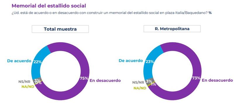 Además, un 75% se mostró en desacuerdo con que se construya un memorial del estallido social en dicho sector, contra un 22% que respalda esta opción.