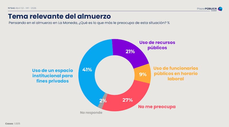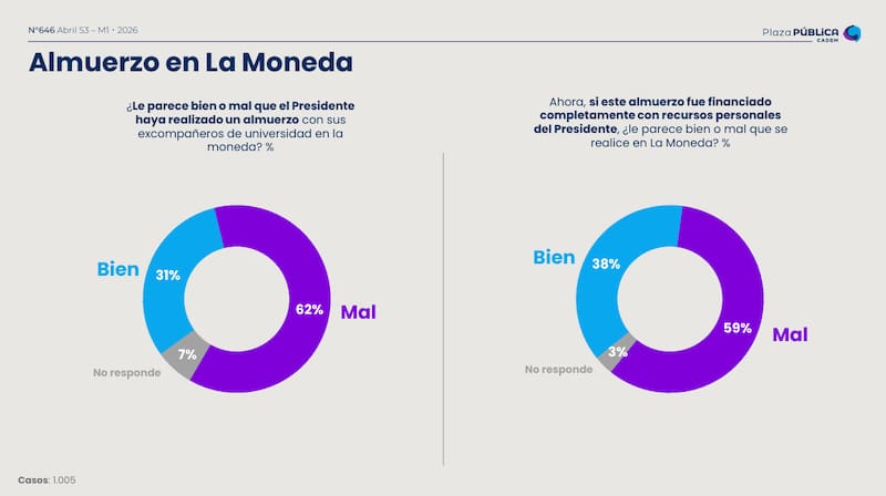 Incluso al incorporar el antecedente de que la comida habría sido financiada con recursos propios del Presidente, un 59% mantuvo una opinión negativa, frente a un 38% que la consideró adecuada bajo esa condición.