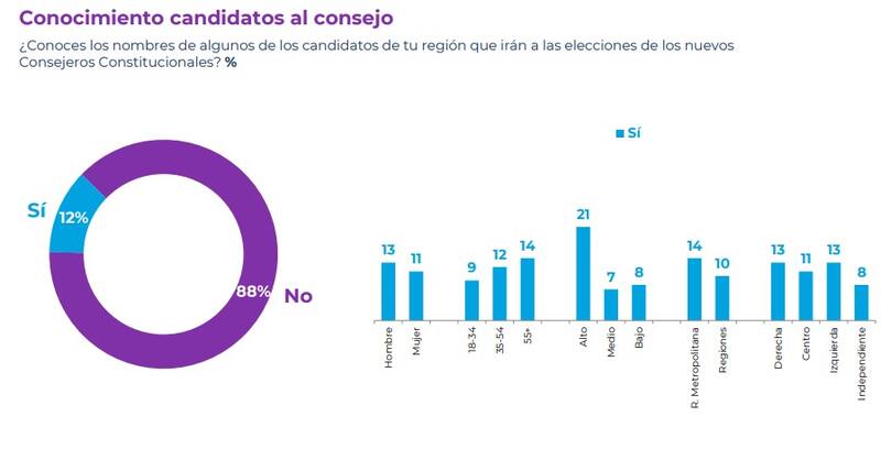 Asimismo, un 88% desconoce los nombres de los aspirantes de su región a este nuevo organismo del proceso constituyente.