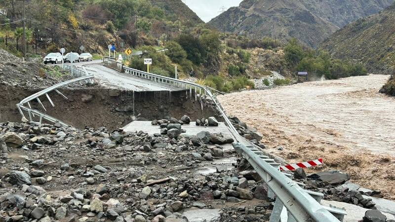 Cerca del mediodía, se registró un importante desnivel en el puente mecano, en el sector San Alfonso, Cajón del Maipo. El colapso se habría producido por el alto flujo de agua y sedimentos.