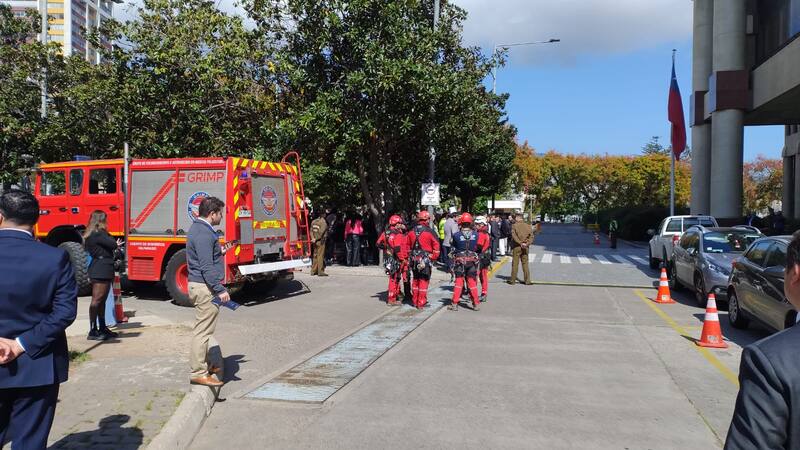 El motivo fue un simulacro de fuga de gas y peligro de incendio en el edificio que acoge a los congresistas, como parte de los protocolos de seguridad que rigen a la Cámara. En la actividad colaboró personal de Carabineros y Bomberos de la ciudad puerto.