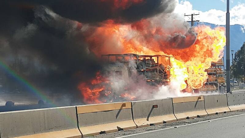 Camión repartidor de gas se incendia en plena carretera a la entrada de Rancagua