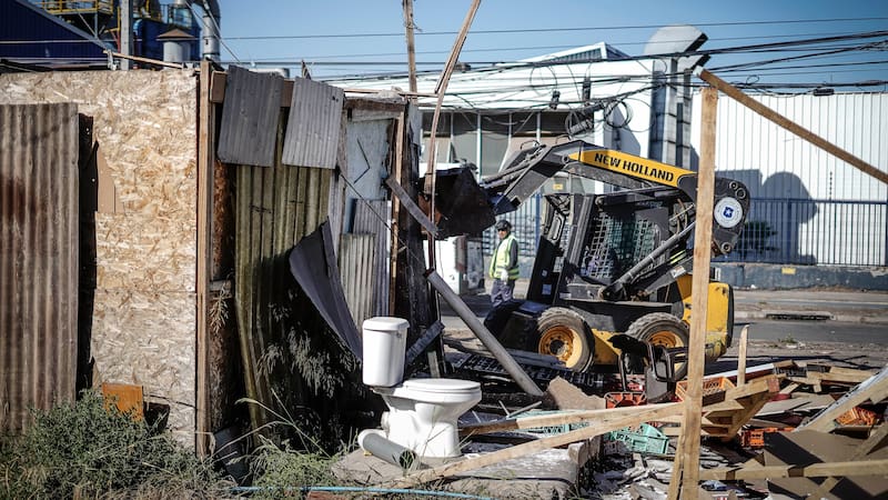 Durante la jornada de este martes continúa la demolición del campamento Santa Marta en la comuna de Maipú, en la Región Metropolitana.