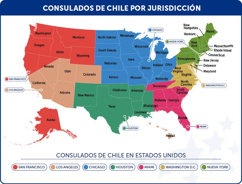 ¿Dónde están los consulados de Chile en Estados Unidos?
