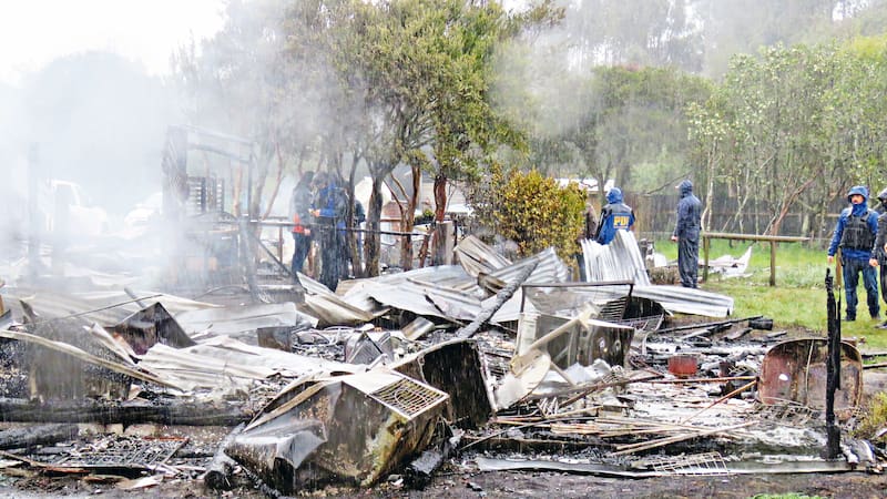 Personal de Control de Orden Público (COP) de Carabineros llegó al lugar, donde observaron que “tres cabañas de material ligero”, de propiedad de las víctimas M.V.C., E.B.G. y M.R.T., habían sido atacadas. “En el lugar, alrededor de seis sujetos encapuchados, premunidos de armamento largo y corto, intimidan a las víctimas, quienes se encontraban habitando una de las cabañas, procediendo a la quema de tres inmuebles y posterior huida del lugar”, dice la constancia policial.