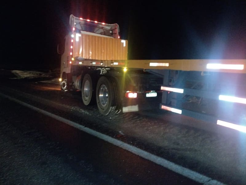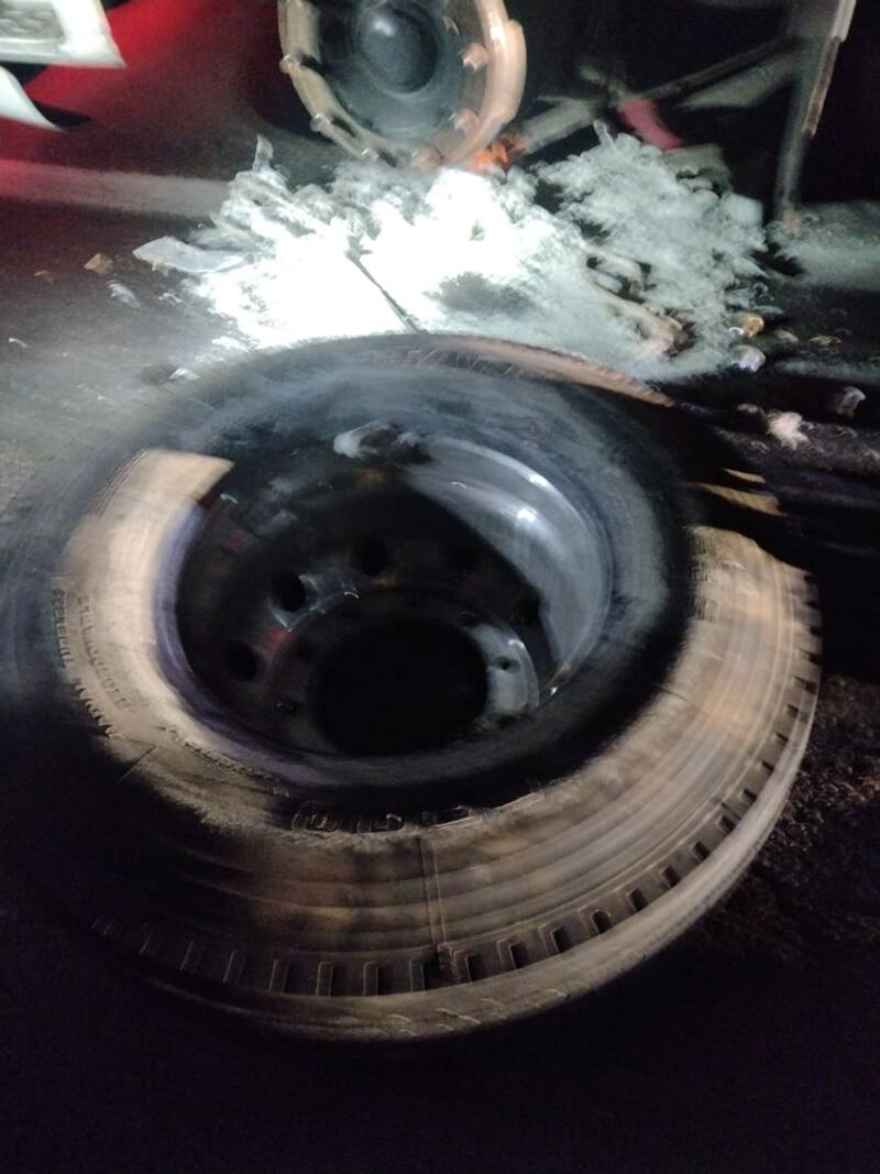 En un patrullaje de rutina, personal policial fiscalizó el camión semiremolque, que se encontraba mal estacionado ocupando la calzada, tras haber reventado uno de sus neumáticos.