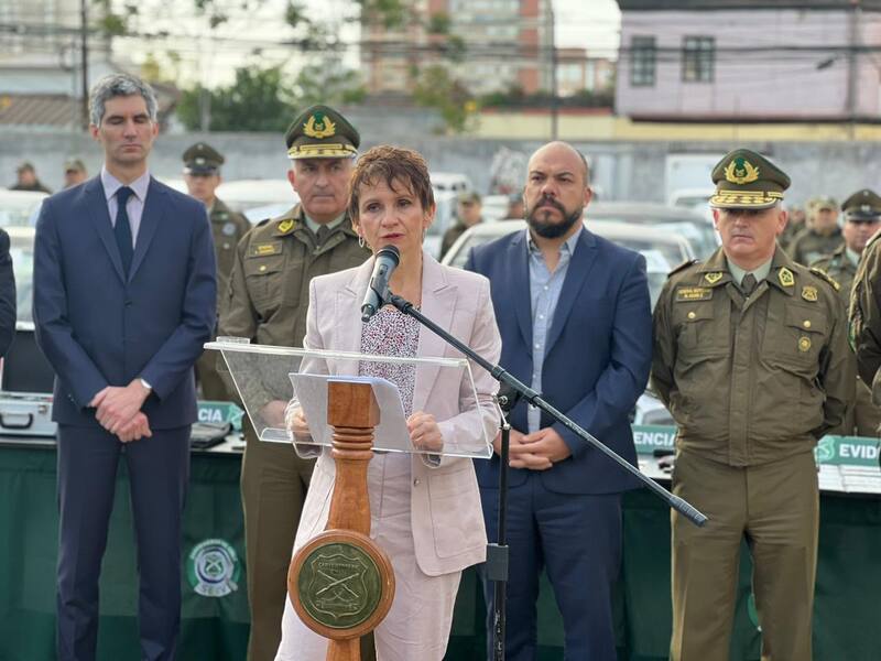 A la comunicación del procedimiento llegó la ministra del Interior, Carolina Tohá, y el subsecretario de Prevención del Delito, Eduardo Vergara. Destacando la labor de Carabineros, Tohá dijo que “lo que se desbarató ayer es muy significativo”.