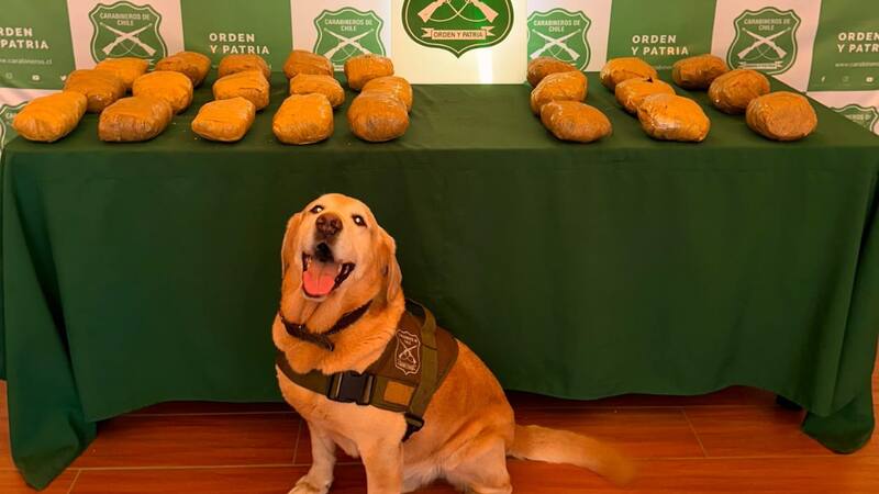 Didier, un can detector de drogas del OS7 de Carabineros de Iquique, fue clave en la detección de 24 paquetes de encomienda con más de 12 kilos de droga que pretendían ser enviados a través de Correos de Chile con destino a la Región Metropolitana.
