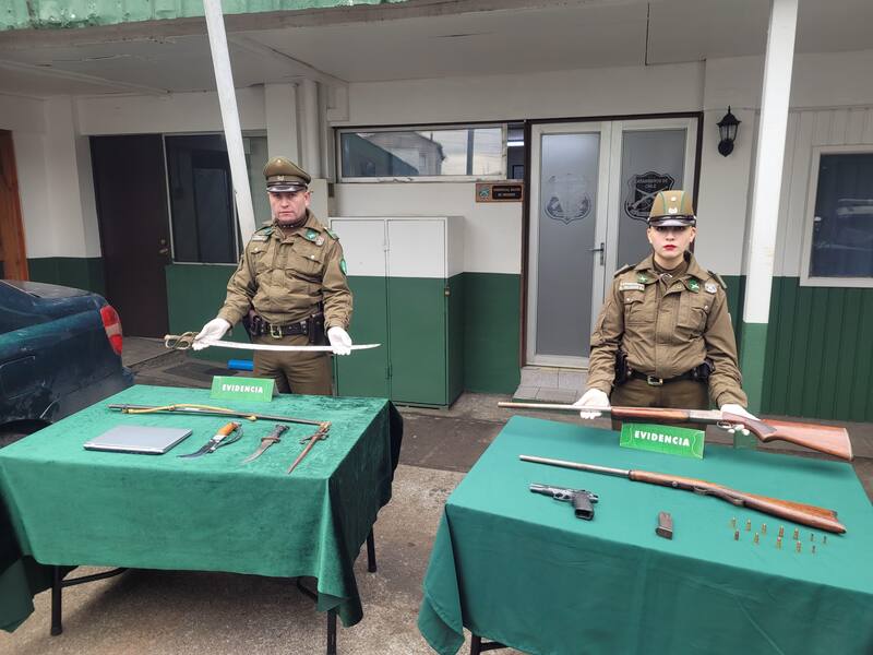 Personal policial de la 3ª Comisaría allanó el domicilio del detenido, encontrando las armas robadas: un rifle que está inscrita en un domicilio de la comuna de Isla de Maipo, en la Región Metropolitana; una pistola con encargo por robo, otras dos armas de fuego, varias cuchillas y una espada. Asimismo, se recuperó un vehículo sustraído y un notebook,