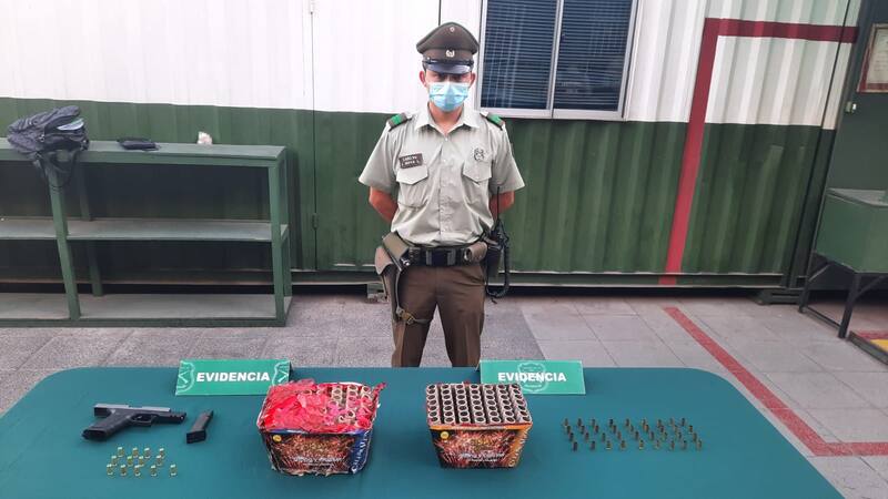 Además, en medio del traslado hasta Huechuraba, se logró recuperar un arma de fuego “encontrada en la vía pública, la cual fue decomisada, levantada mediante cadena de custodia, rotulada y enviada al Ministerio Público”, detalló el mayor Cerda, quien además dio cuenta que se logró incautar fuegos artificiales, los que también fueron puestos a disposición del Ministerio Público para la posterior investigación, por infringir la Ley de Control de Armas.