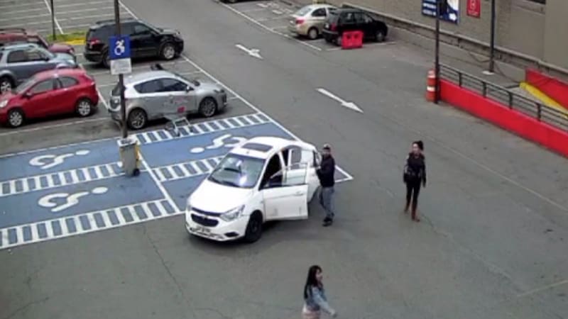 Para esto, las mujeres ingresaron a un vehículo ubicado en el frontis del supermercado, del cual bajó un sujeto que portaba un extintor, con el que rompió mamparas de vidrio del lugar. Posterior a ello, abordó el mismo automóvil, aceleró y atropelló a un guardia de seguridad que pretendía impedirles la huida.
