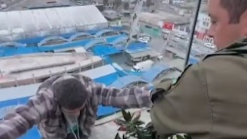 Efectivos formaron una cadena humana para rescarar a hombre de 21 años que colgaba de una terraza del centro comercial.