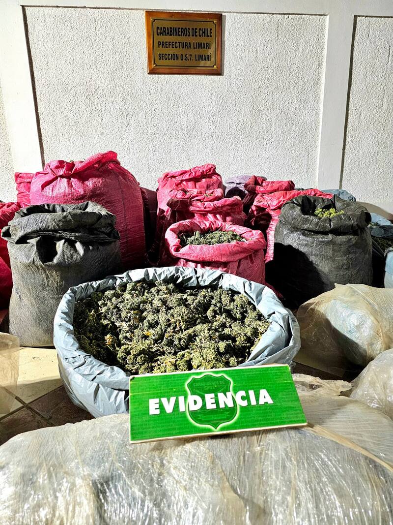 En el lugar, Carabineros pudo decomisar 4.200 plantas en crecimiento de cannabis sativa, con un avalúo de más de $20 mil millones, y más de 289 kilos de marihuana elaborada y a granel, con un avalúo de más de $2 mil 300 millones, al interior de una bodega artesanal adaptada en el predio, como también incautó un rifle de origen argentino, sin inscripción en territorio nacional, 30 municiones calibre 22 y 47 municiones calibre 9mm, todas sin percutar.