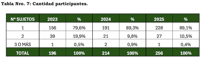 “De la tabla podemos inferir que en 2025 se han producido 60 y 42 casos más en comparación con el mismo período de los años 2023 y 2024, lo que equivale al 30,6% y al 19,6% de variación relativa, respectivamente”, dice el texto al cual tuvo acceso La Tercera.