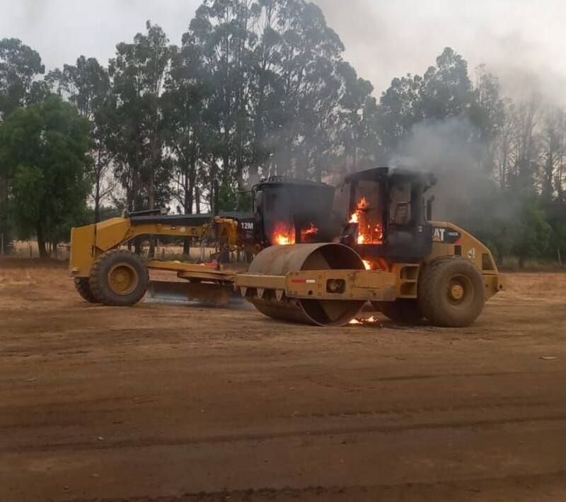 Al lugar llegó personal especializado con vehículos blindados con el fin de controlar la situación. En el lugar también se encontraron maquinarias forestales incendiadas.