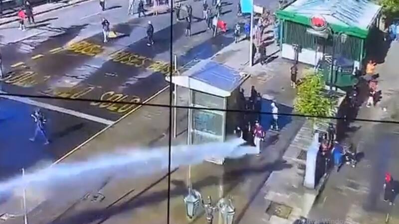 La presencia de estos grupos motivó la instalación de vallas papales en el perímetro de la sede de Gobierno. Carabineros, en tanto, desplegó a personal de la Prefectura de Control de Orden Público y se utilizaron carros lanzagua y gases lacrimógenos para dispersar a los manifestantes que realizaron barricadas y prendieron fogatas en las calles aledañas.