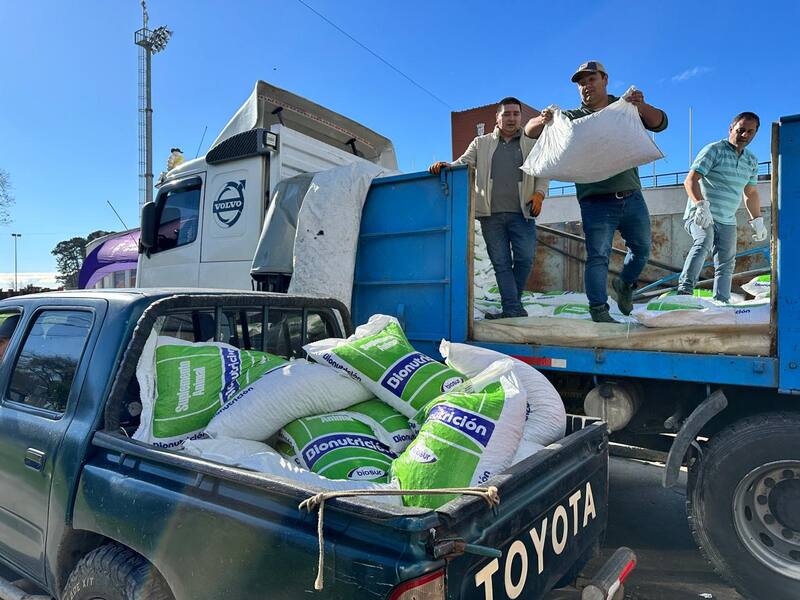 En detalle, la distribución consistió en 30 toneladas de alimento concentrado para animales, con el fin de suplir la primera necesidad que dejó el temporal en el mundo campesino.