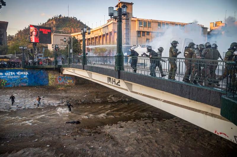 Casi cuatro años antes, el 2 de octubre de 2020, fue protagonista de la caída de 7,4 metros de un menor de edad a las aguas del río Mapocho, tras haberlo intentado detener en un procedimiento policial por una protesta en el puente Pío Nono de Santiago. Entonces, fue apartado de las filas de la institución, no por la caída del manifestante, sino porque omitió que portaba una cámara corporal el día del procedimiento.