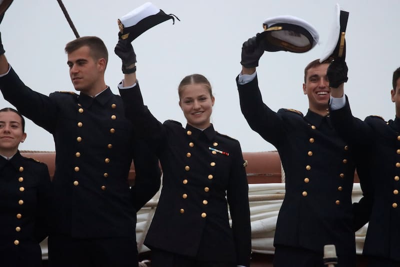 La princesa de Asturias ha navegado junto a sus 75 compañeros de promoción como parte de su formación militar. La tripulación comandada por el capitán de navío Luis Carreras-Presas, también está compuesta por 20 oficiales, 20 suboficiales y 130 marineros.