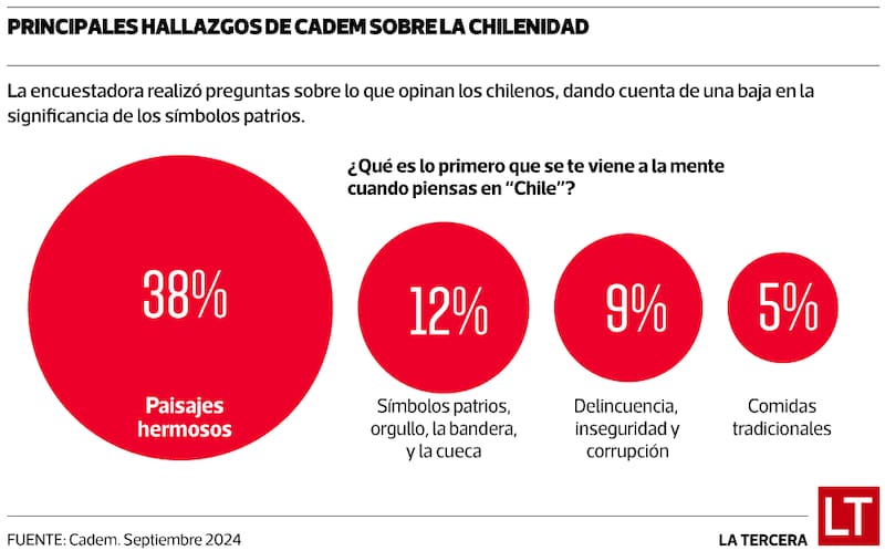 Con las Fiestas Patrias a la vuelta de la esquina, Cadem realizó una encuesta sobre diversos aspectos de la chilenidad, evidenciando una baja respecto de la identificación con el himno, la bandera o la cueca. Al mismo tiempo, el personaje histórico más admirado es Arturo Prat, como conjuntos musicales Los Jaivas y Los Prisioneros, y en el plano literario Gabriela Mistral e Isabel Allende.