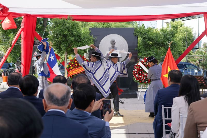 No menos importante, el evento contó con la presencia de figuras destacadas nacionales, como la expresidenta Michelle Bachelet y el alcalde de la comuna, Mauro Tamayo Rozas. La jornada inició con un emotivo minuto de silencio y la colocación de una ofrenda floral en honor al líder revolucionario Ho Chi Minh. Tras ello, el alcalde Tamayo Rozas y la ex presidenta Bachelet compartieron unas palabras de amistad y solidaridad entre ambas naciones.
