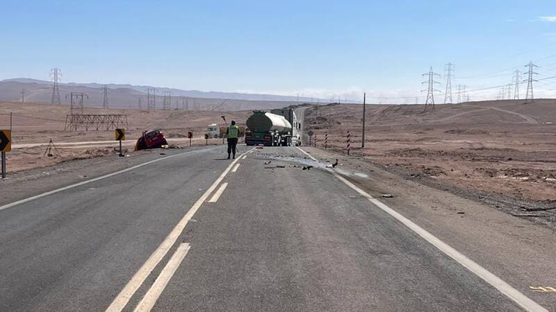 Carabineros de Chile reportó un accidente de tránsito en la Ruta 24 en la comuna de Tocopilla, Región de Antofagasta. El hecho involucró a un camión y en vehículo, dejando a tres fallecidos.