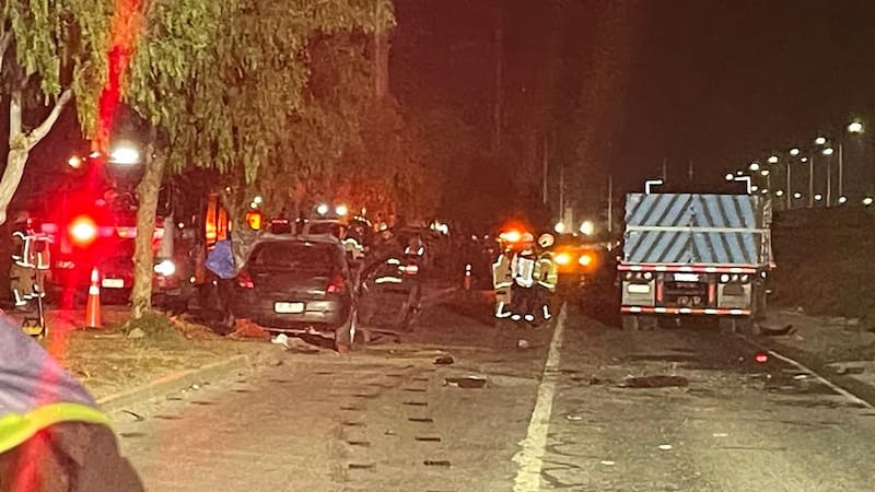 “Tenemos el relato del conductor del camión, que nos menciona que este vehículo venía en sentido contrario y en un momento imprevisto, cruza el eje de la calzada y colisionan frontalmente. En el vehículo menor iban tres personas, tres hombres adultos”, informó el capitán César Bustamante, oficial de Ronda de la Prefectura Santiago Cordillera.