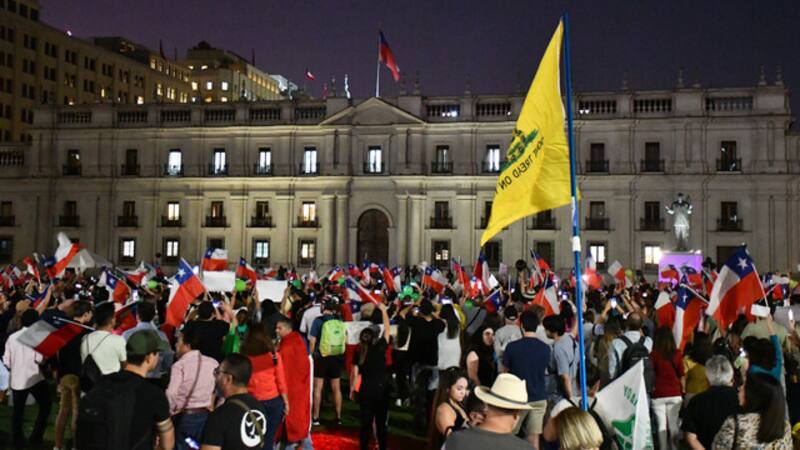 En el frontis del palacio presidencial, el grupo de ciudadanos entonó consignas en apoyo a Carabineros y también cánticos en rechazo al gobierno del Presidente Gabriel Boric.