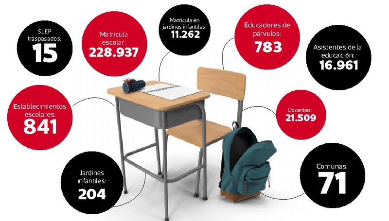 Al margen de estas definiciones que aún se deben tomar, la decisión del Mineduc de continuar con esos cuatro SLEP implica 212 escuelas, colegios y liceos sumándose a la nueva institucionalidad educativa, así como también 54 jardines infantiles, lo que representa una matrícula de casi 60.000 alumnos: 54.650 escolares y 2.984 párvulos. A ellos se añaden 195 educadores de párvulos, 4.471 asistentes de la educación y 5.544 docentes.
