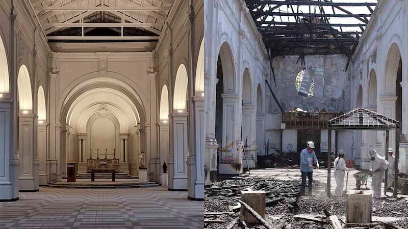 Durante el primer aniversario del estallido social, un incendio destruyó el templo ubicado en Vicuña Mackenna. Aunque aún no termina su restauración, este domingo, 1.680 días después, volverá a recibir feligreses en una misa encabezada por el cardenal Chomali.