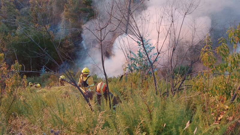 En el trabajo de contención del fuego han trabajado Bomberos de Lautaro y Perquenco, apoyados por brigadistas y aeronaves que están lanzando descargas de agua para sofocar las llamas en pastizales.