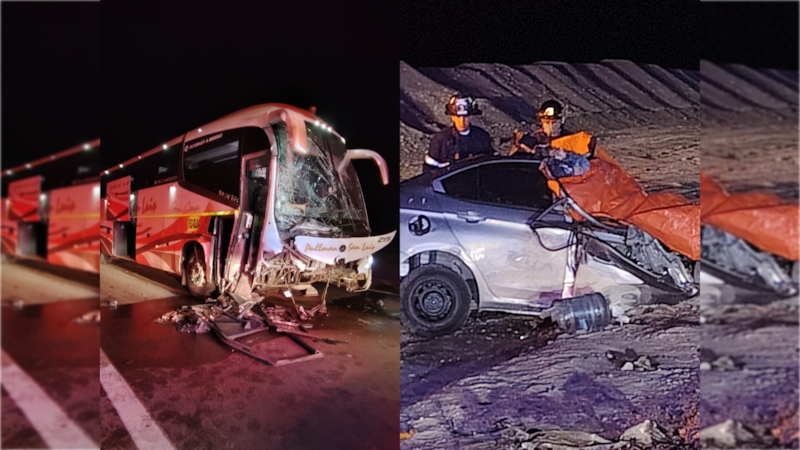 Un trágico accidente de tránsito se registró la noche de este viernes, donde fallecieron cinco personas -entre ellas tres menores de edad- tras la colisión de un bus de trabajadores y un automóvil, en una autopista em la comuna de Mejillones, Región de Antofagasta.