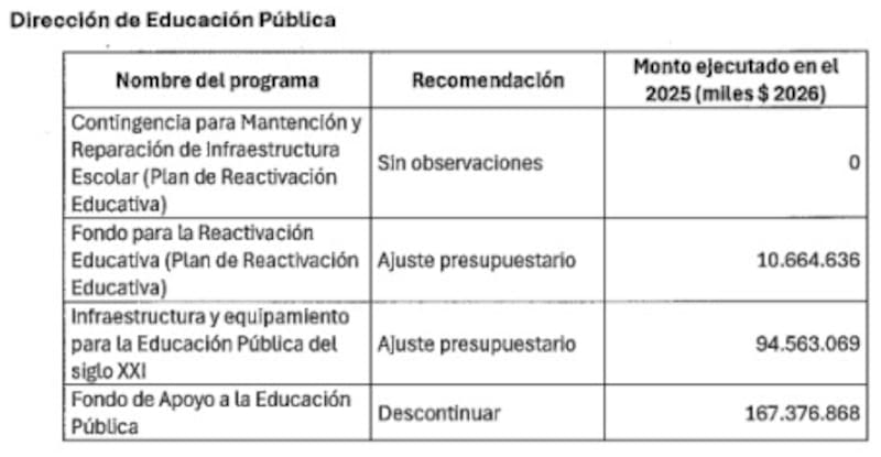 Así, aunque La Moneda intentó bajarle el perfil por el evidente flanco que esto generó, de los oficios se extrae que un total de 142 programas fueron sugeridos de “descontinuar”. En el Mineduc, por ejemplo, la sugerencia era cortar 15, entre ellos el Fondo de Apoyo a la Educación Pública, o el Programa de Alimentación Escolar.