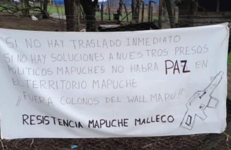 En el lugar fue encontrado un lienzo con la firma del grupo Resistencia Mapuche Malleco. En el escrito se pide el retorno al penal de Angol de los presos que fueron trasladados a otras regiones luego del motín del 7 de mayo.