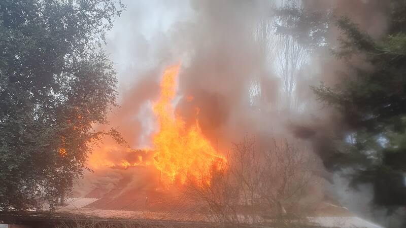 Una vivienda, galpones, maquinarias y un vehículo fueron consumidos por el fuego en la comuna Victoria, tras un ataque incendiario en el que un agricultor de 66 años resultó herido por un impacto de bala.