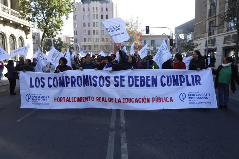 La jornada de este miércoles el Colegio de Profesores realizó un paro de advertencia de 24 horas. Además, se convocó a una multitudinaria marcha de profesores que recorrió el centro de Santiago.