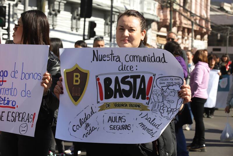 Respecto a la movilización de esta jornada, Díaz realizó una evaluación “muy positiva” y aseguró que “sobre 120 mil docentes estarían participando de una movilización indefinida, que son los que hemos estado movilizando durante estos días, tanto el 26 de julio como el día de hoy y mañana, que da cuenta del 90% en porcentaje de lo que es hoy día la educación pública en nuestro país”.
