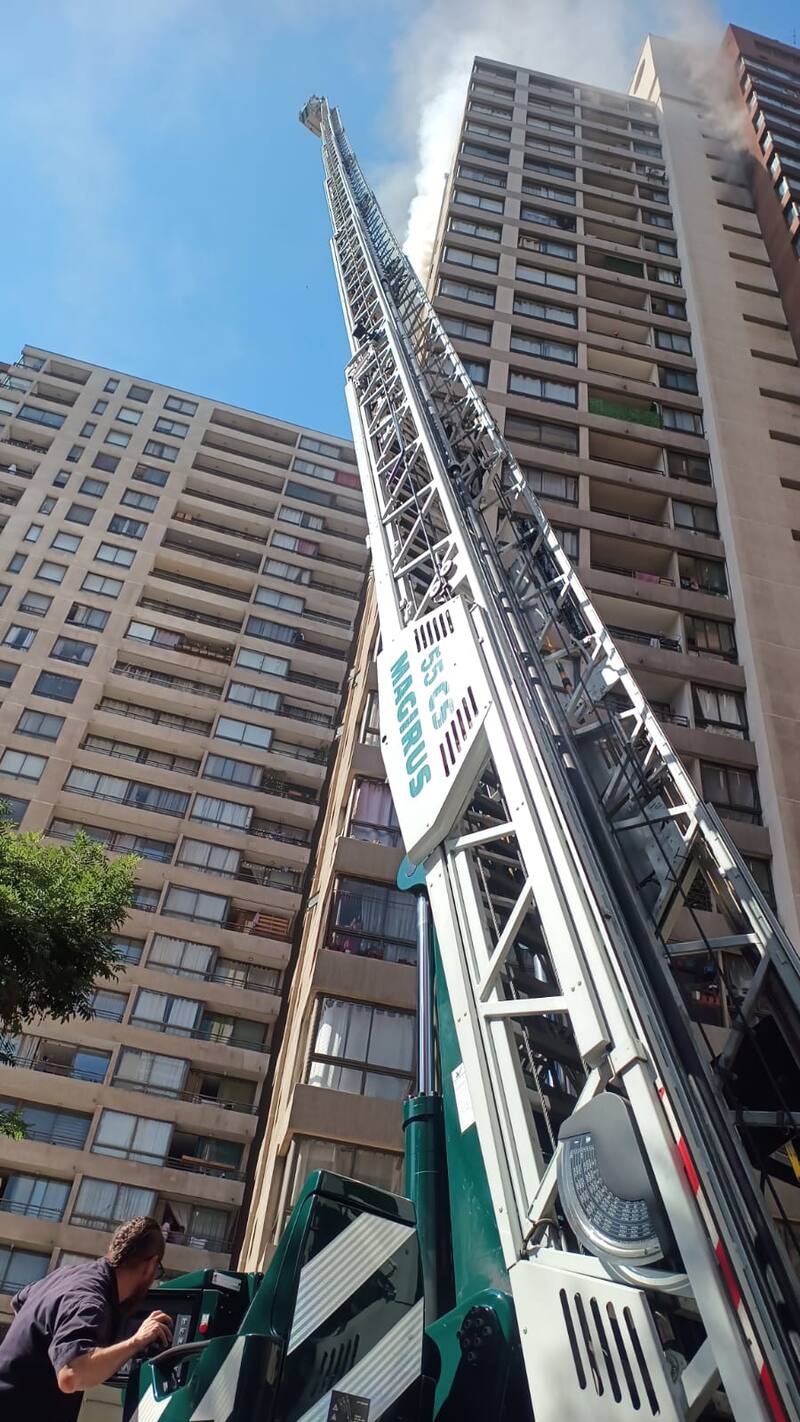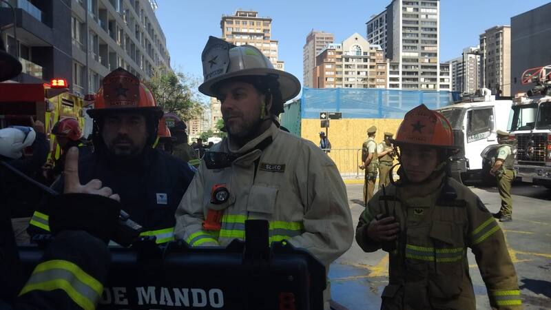 El 2° comandante del Cuerpo de Bomberos de Santiago, Juan Pablo Slako, “tenemos tres departamentos afectados por el fuego, casi en su totalidad. Hay departamentos afectados por el humo y por el agua, alrededor de ocho departamentos”.