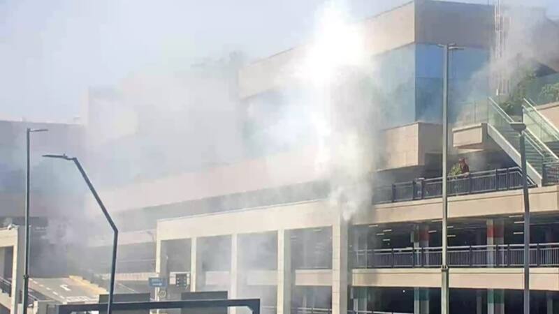 Controlan incendio en estacionamiento de centro comercial en Las Condes